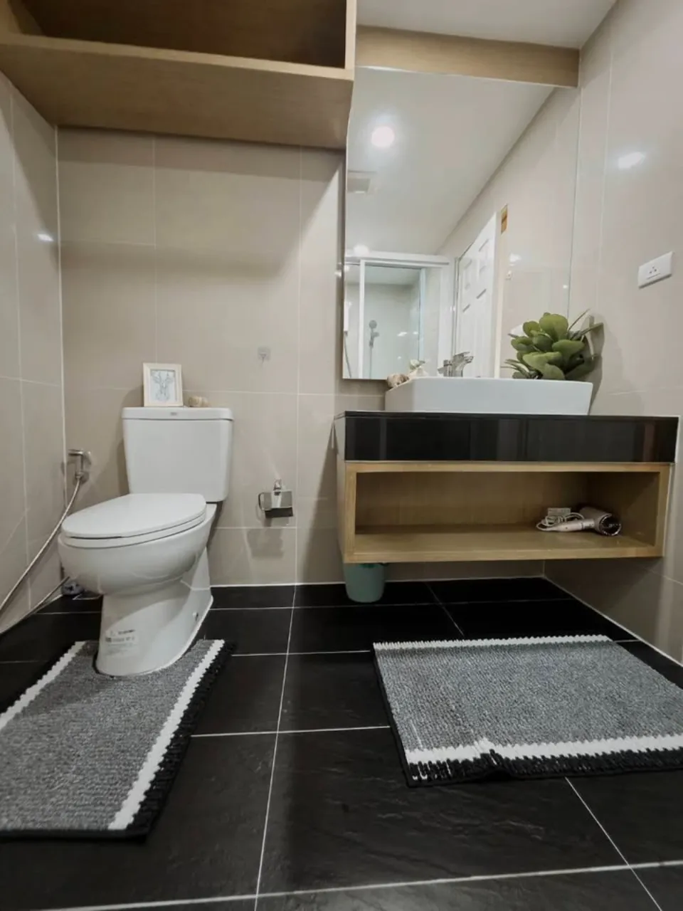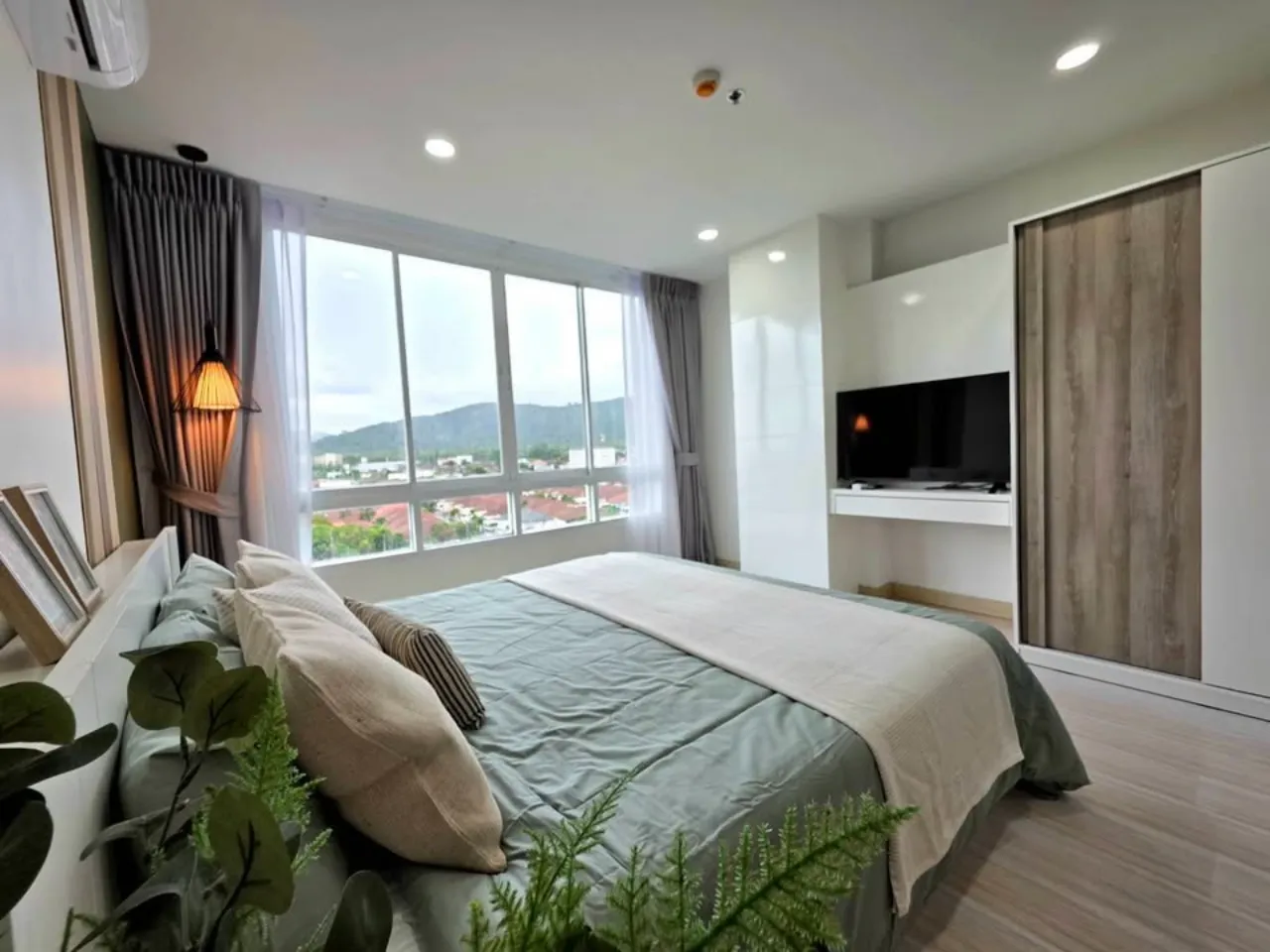 ห้องขนาด 54.2 ตร.ม. 2 ห้องนอน 1 ห้องน้ำ 1 ห้องครัว ระเบียง วิวภูเขาแบบเต็มตา พร้อมเฟอร์นิเจอร์และเครื่องใช้ไฟฟ้าครบ สิ่งอำนวยความสะดวก: รปภ. 24 ชั่วโมง สระว่ายน้ำ ฟิตเนส ตู้น้ำดื่ม และ 7-Eleven ที่ล็อบบี้ เหมาะสำหรับอยู่อาศัยเองหรือปล่อยเช่า