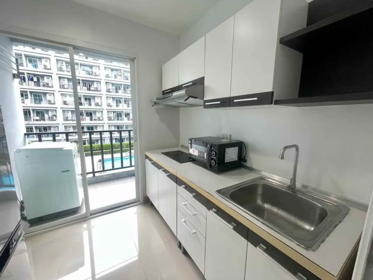 ขนาด 32.60 ตร.วา 1 ห้องนอน 1 ห้องน้ำ 1 ห้องครัว วิวสระน้ำ เฟอร์นิเจอร์และเครื่องใช้ไฟฟ้าครบ