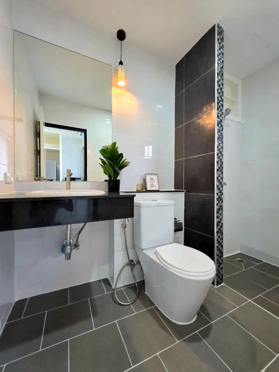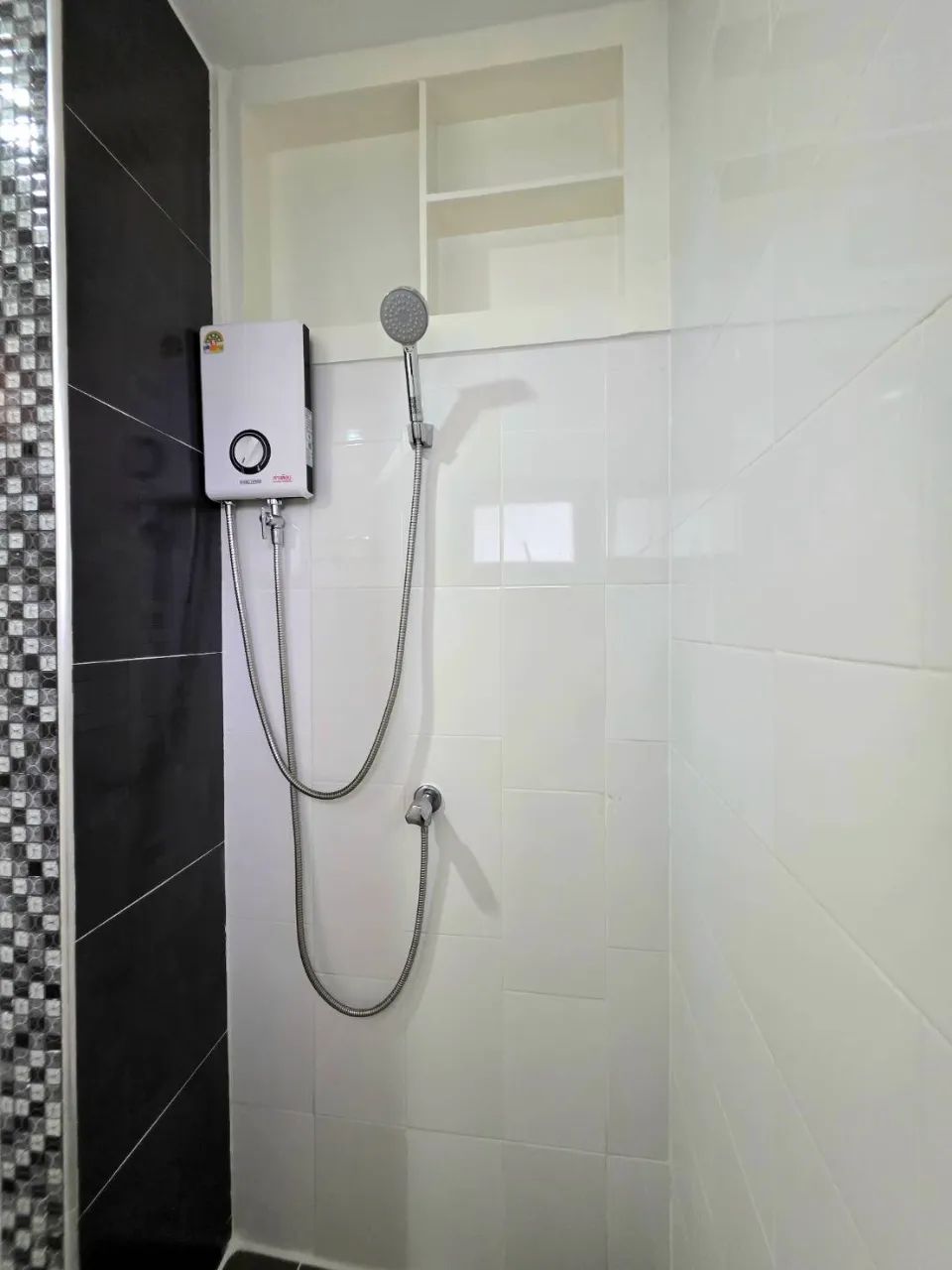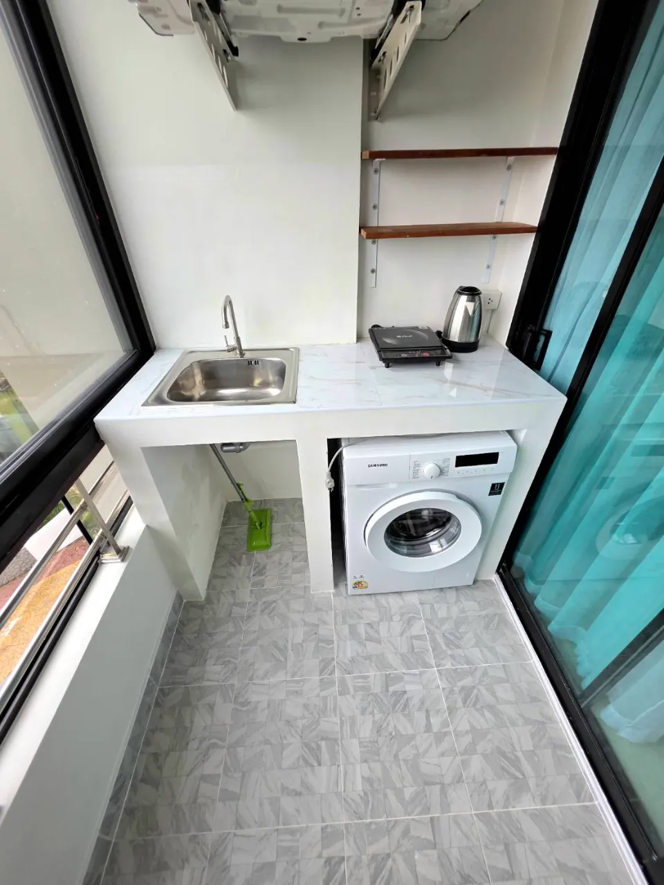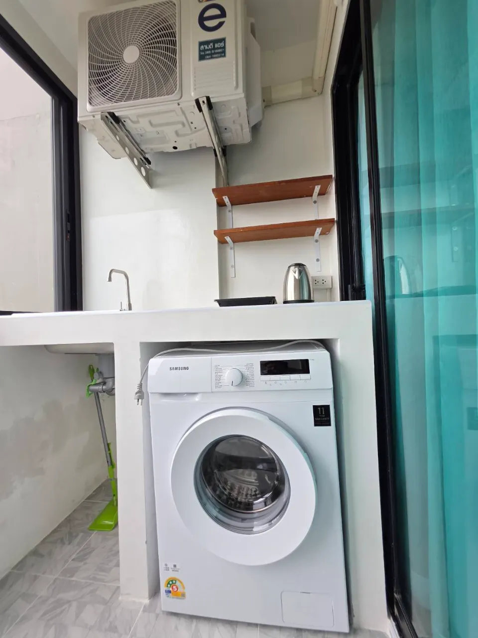 เคาน์เตอร์ปูนพร้อมเครื่องซักผ้าฝาหน้า แถมฟรีแอร์ ทีวี ตู้เย็น เครื่องทำน้ำอุ่น เตาไฟฟ้า