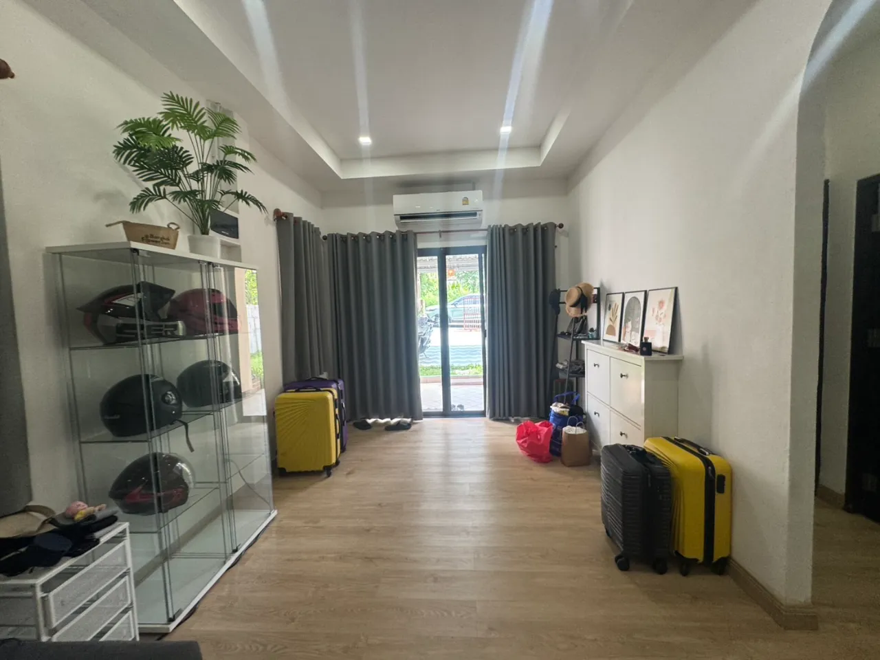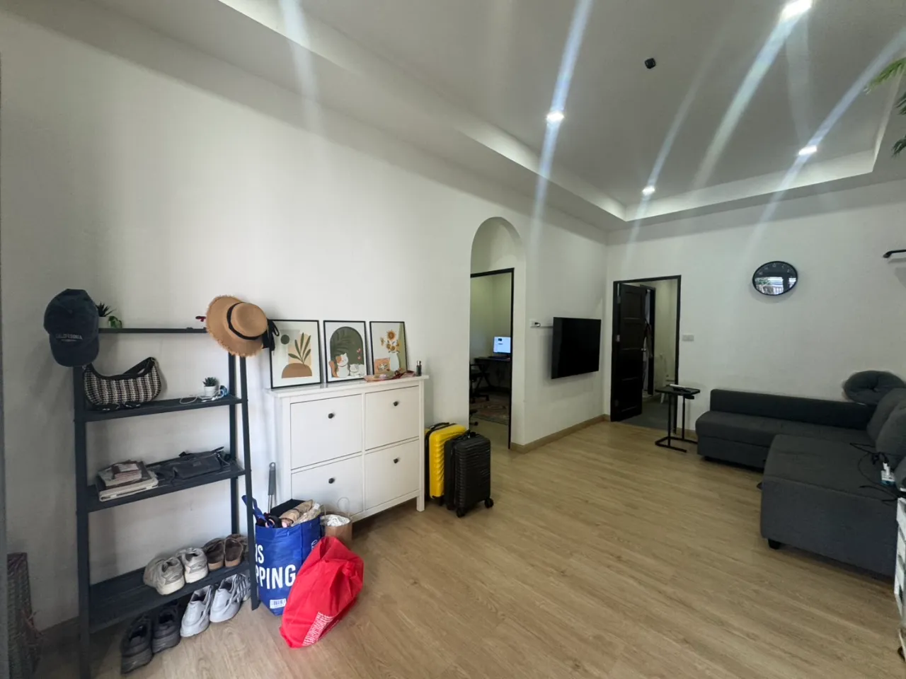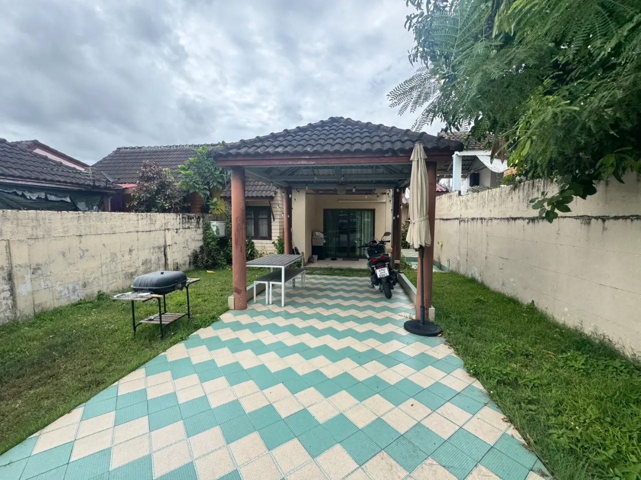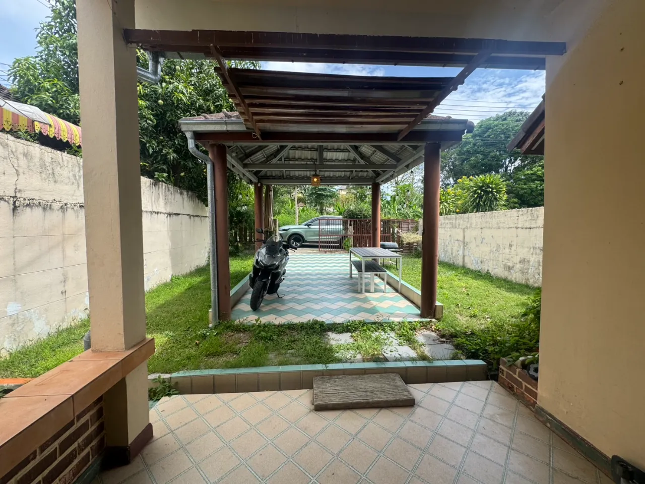 ขนาด 42 ตร.วา (168 ตร.ม.) 2 ห้องนอน 1 ห้องน้ำ เฟอร์นิเจอร์ครบ แอร์ 3 เครื่อง ห้องครัว ห้องซักผ้า พร้อมสวน บรรยากาศเงียบสงบ