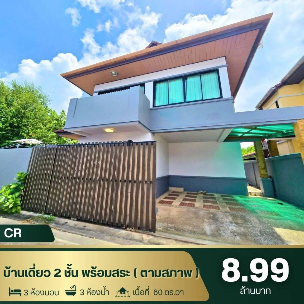 ขนาด 60 ตร.ว. 3 ห้องนอน 3 ห้องน้ำ พร้อมสระว่ายน้ำ