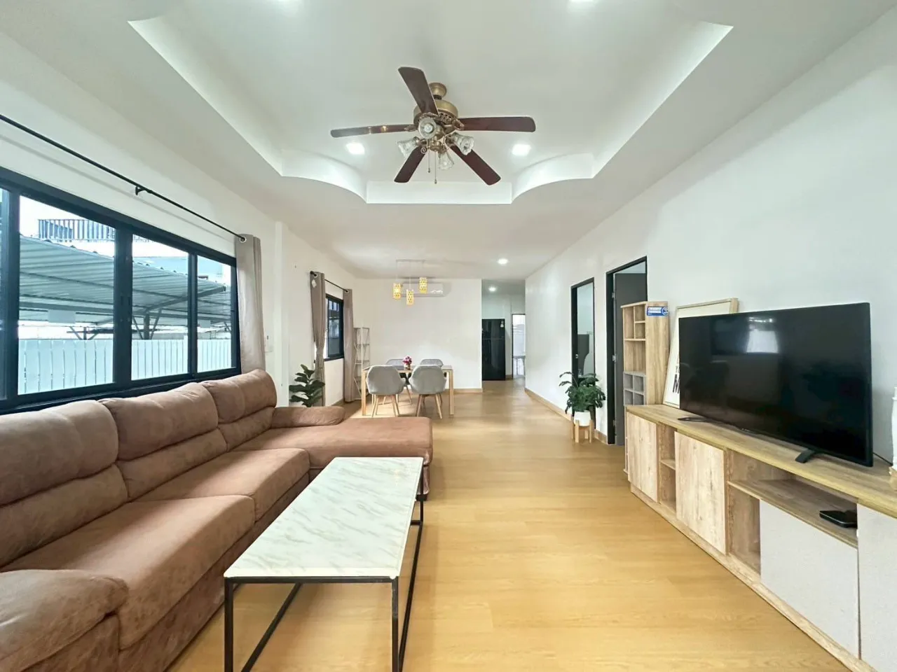 ขนาด 54 ตร.วา 3 ห้องนอน 3 ห้องน้ำ 1 ห้องทำงาน/เก็บของ จอดรถในบ้าน 2 คัน จอดหน้าบ้าน 2 คัน