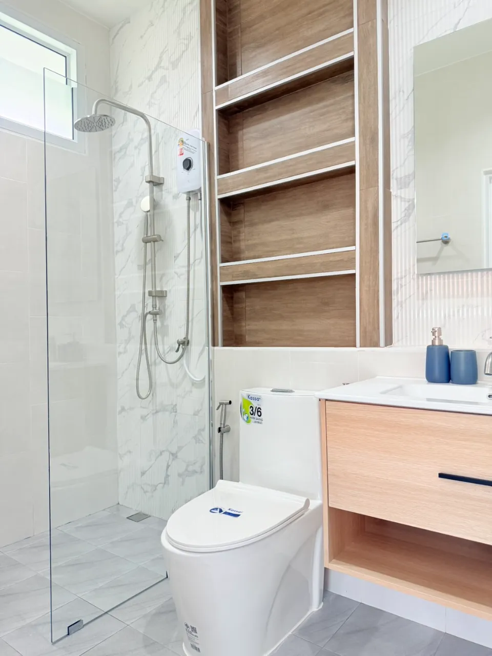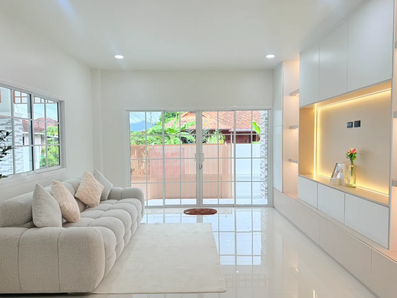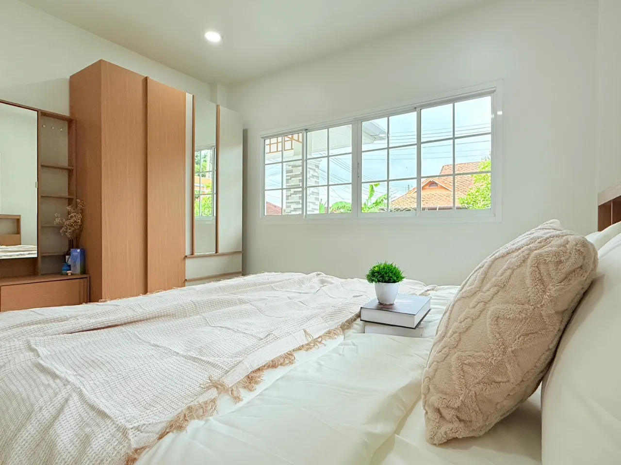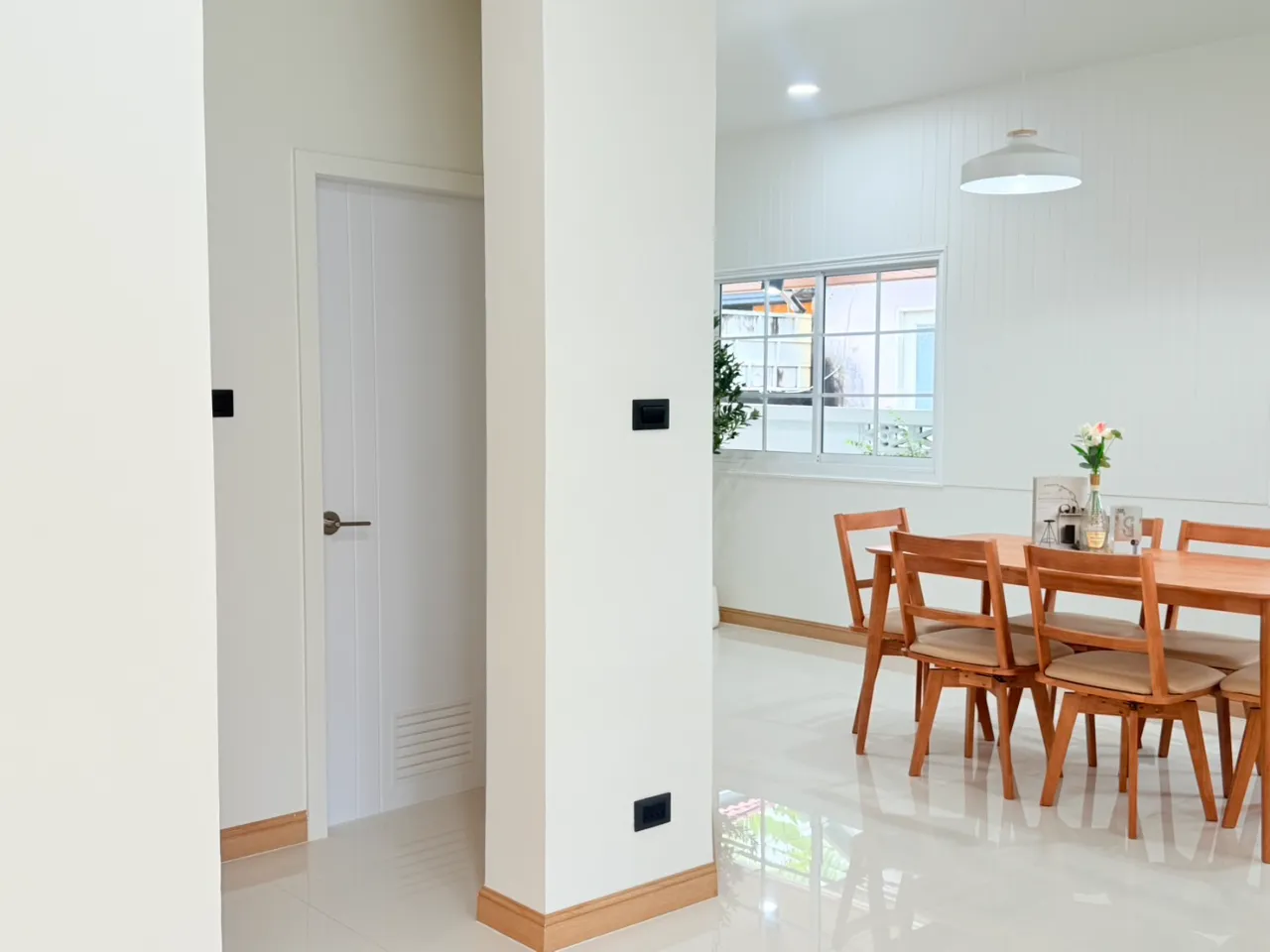ขนาด 56 ตร.วา 3 ห้องนอน 2 ห้องน้ำ 1 ห้องเก็บของ จอดรถในบ้าน 1 คัน