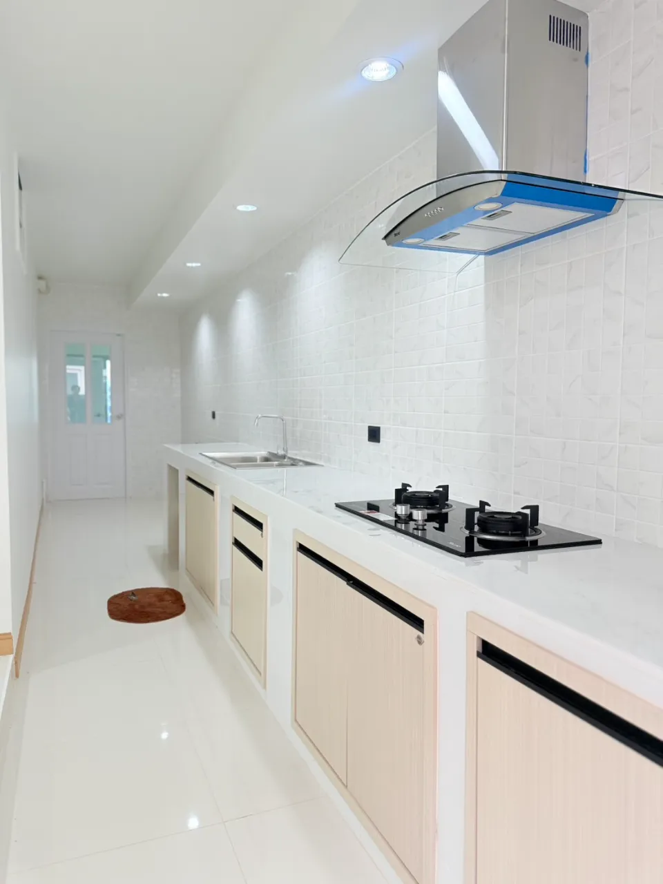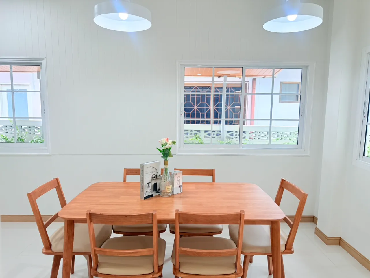 โต๊ะกินข้าว 6 ที่นั่ง เครื่องทำน้ำอุ่น 2 เครื่อง เตาแก๊ส+ฮู้ดดูดควัน