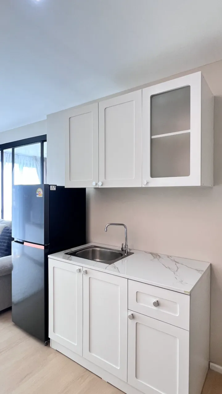 ตึก B ชั้น 8 ห้องมุม ขนาด 30.6 ตร.ม. 1 ห้องนอน 1 ห้องน้ำ 1 ห้องครัว วิวภูเขา รีโนเวทใหม่