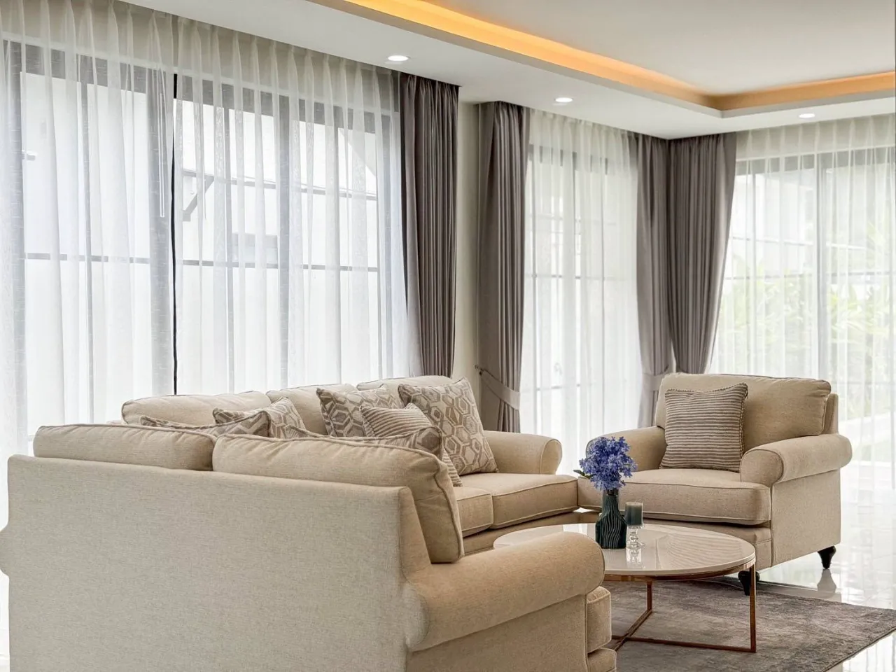 แถม Full Furniture ครบทุกฟังก์ชั่น ครัวพร้อมเคาน์เตอร์ ฮู๊ดดูดควัน เตาแก๊สแบบฝัง เตาอบ ถังเก็บน้ำใต้ดิน ปั๊มน้ำ แอร์ 4 ตัว ทีวี 3 เครื่อง ชุดรับแขกสุดหรู จัดสวน