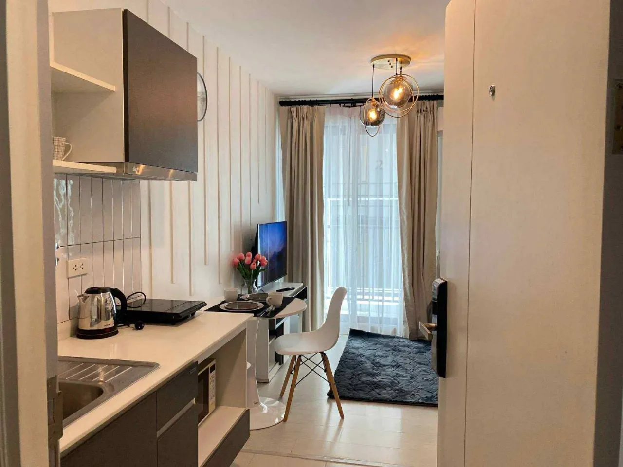 ขนาด 28 ตร.ม.แถมแอร์ 2 เครื่อง บิ้วอินและเครื่องใช้ไฟฟ้าครบ ทั้งทีวี ตู้เย็น เครื่องซักผ้า เตาไฟฟ้า พร้อมอยู่