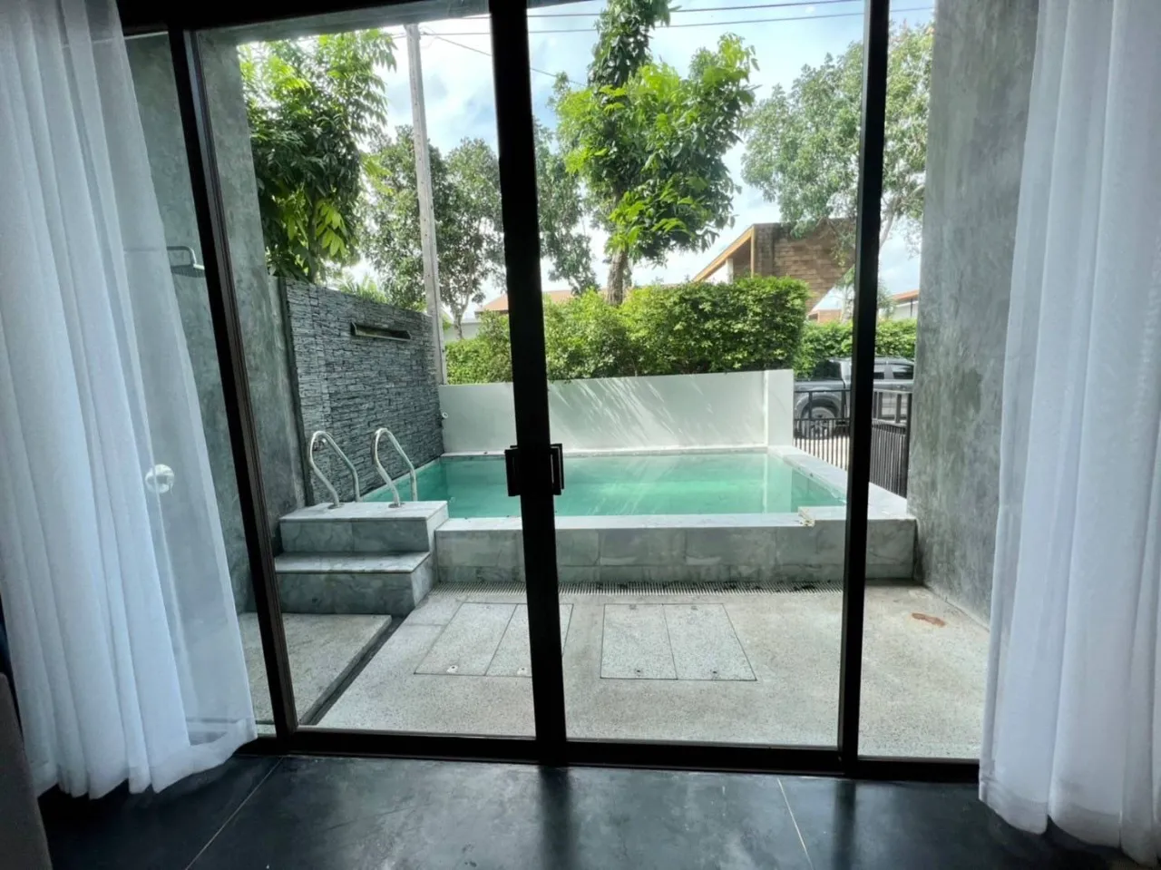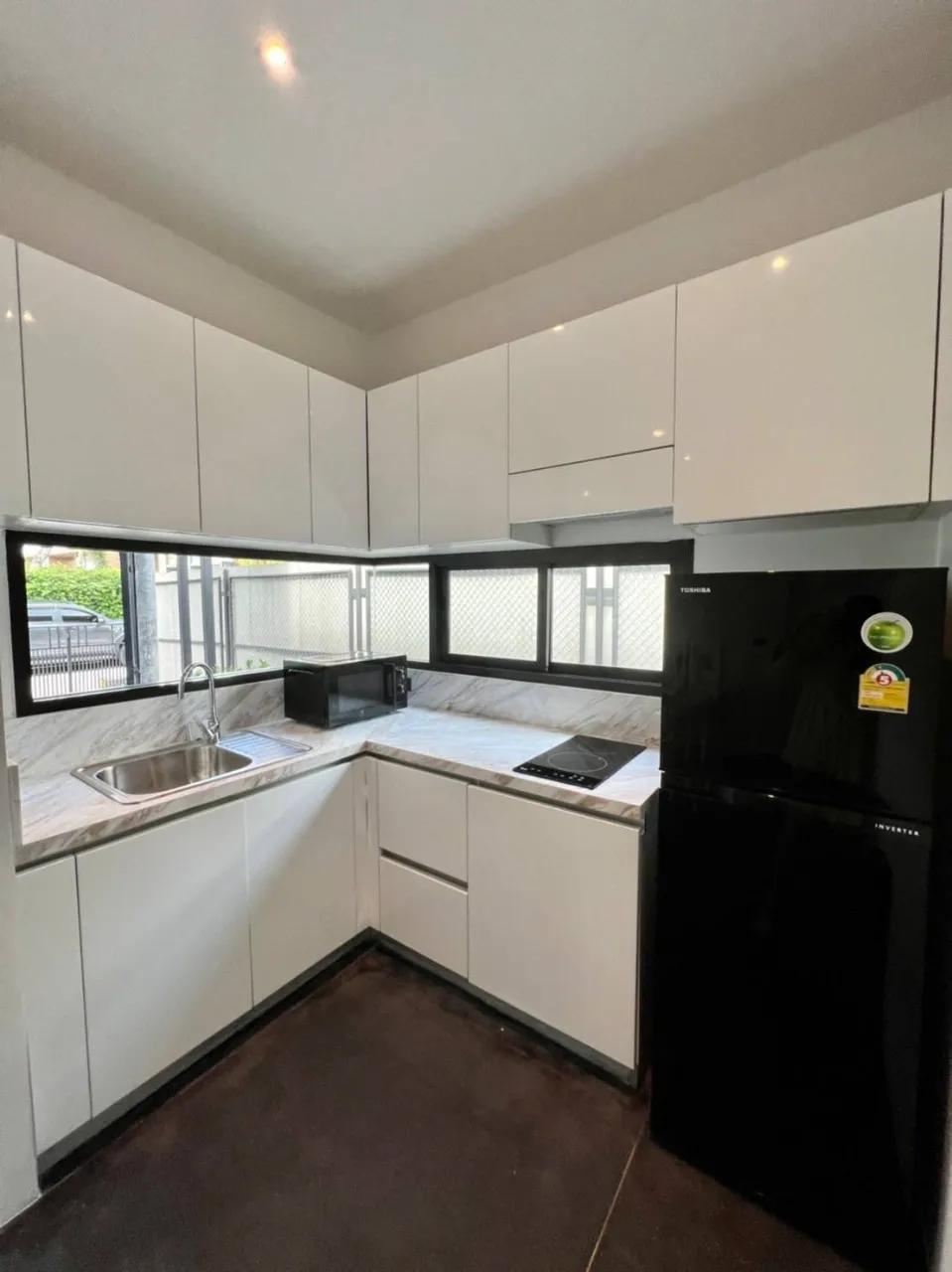 ขนาด 36 ตร.วา 2 ห้องนอน 2 ห้องน้ำ 1 ห้องครัว พร้อมสระว่ายน้ำและที่จอดรถ 1 คัน